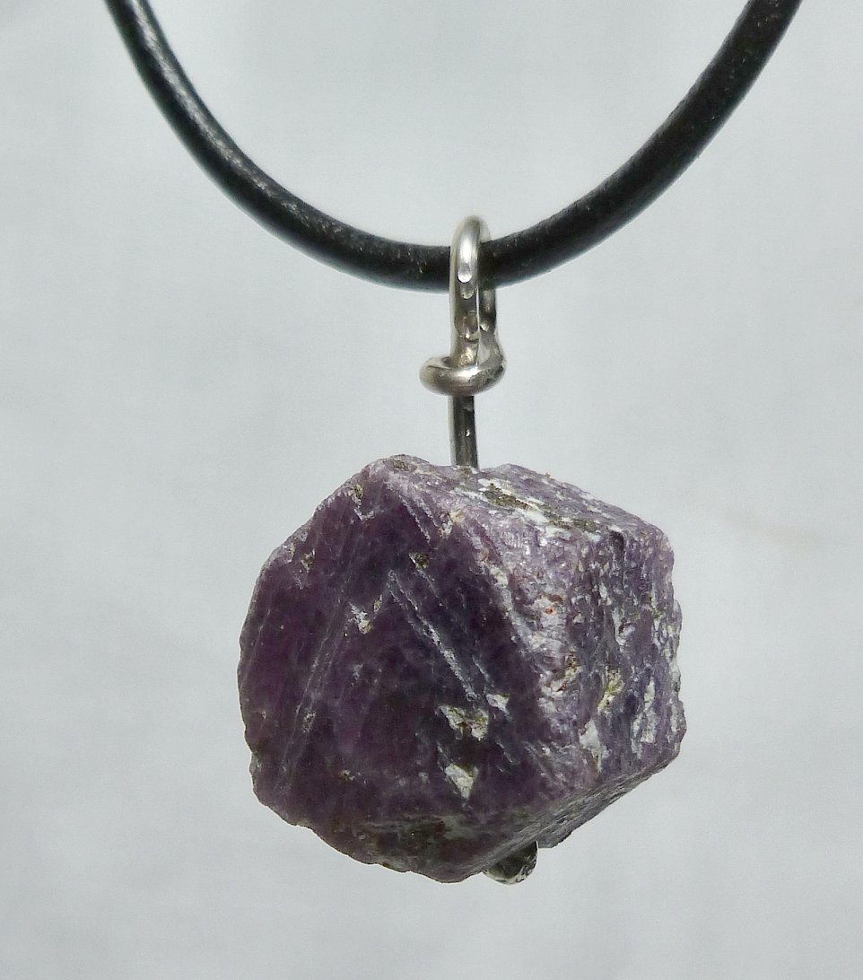 View 2 Ruby Recorder Crystal talisman pendant Shamanic heart 5th chakra energizer deep energies from Madagascar powerful healing recorder crystal 18 x 18 x 12 mm (stone alone) sterling silver bail adjustable leather necklace included item # rubycrytalis12 $139.99 |
